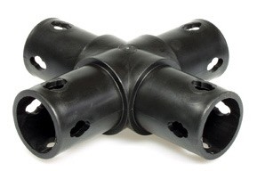 Raccord de surface à 4 bras pour relier quatre tubes Moveandstic. Avec des raccords de surface supplémentaires, tu peux par exemple construire des parois latérales et des balustrades et combiner plusieurs kits Moveandstic.